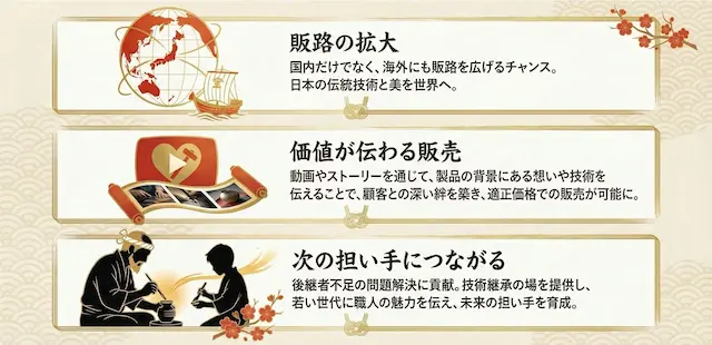 職人の技術が、世界中の人々の心を動かす。視聴者が、職人の商品を手に取り、その温もりを感じる。
