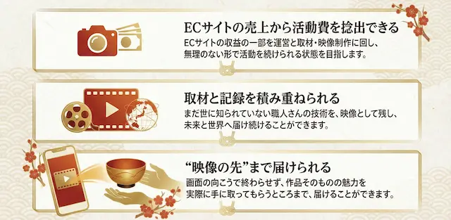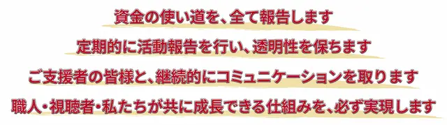 - 職人・視聴者・私たちが共に成長できる仕組みを必ず実現します