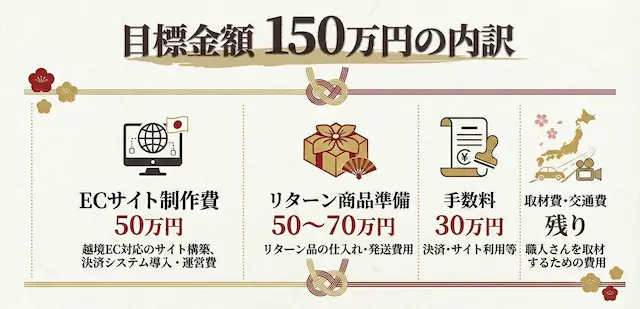 この「三方良し」のECプラットフォームを実現するためには、初期投資としてECサイトの設立資金が必要です。また、ECサイトをただ作るだけでなく、本当に価値あるものにするためには、私たちの想いに共感してくれる「最初の仲間」の存在が不可欠です。