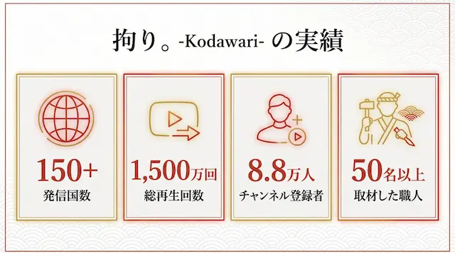 日本各地の職人の技と生き方を記録し、150カ国以上へ届けてきたYouTubeチャンネル『拘り。-Kodawari-』(運営:寺澤大智・杉浦惇希)は、伝統工芸が直面する「販路不足」「担い手不足」の課題解決を目指し、職人に特化した越境ECサイト『Kodawariストア』の設立を発表しました。