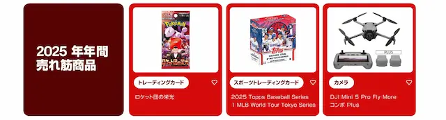 スポーツトレーディングカードではMLB関連商材や大谷翔平選手関連のカードの高額取引が目立ち、日本発のコレクターズアイテムの海外需要の強さが改めて示されました。