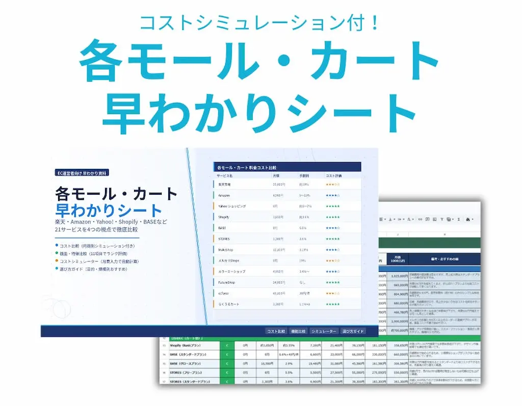 「乗り換えの手間」を理由に、合わないプラットフォームを使い続けているEC事業者は想像以上に多いです。でも実際には、比較する情報がなかっただけというケースがほとんど。この資料を使えば5分で現状のコストが把握できます。まず「今いくら払っているか」を知ることが、EC運営を変える最初の一歩です。」