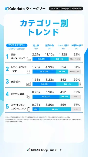 日本TikTokショップ市場週次レポート(2026年3月9日〜3月15日)