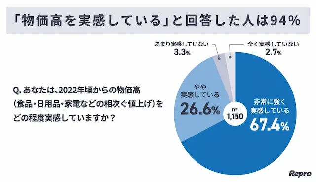 - 物価高を実感している人は94%