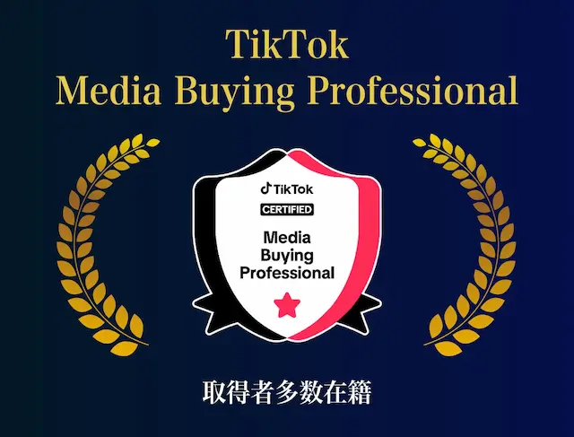 TikTok製品に精通した専門家に与えられる、TikTokメディアバイイング認定資格「Media Buying Professional」を、10名以上のメンバーが取得済みです。TikTok運用に不可欠な専門知識を備え、成果に直結する提案・支援を行っています。
