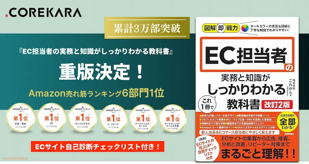 15年間自社EC事業支援の最前線を担ってきた株式会社これから(本社:東京都新宿区、代表取締役:今泉 雄介)が発刊した、EC担当者向け手引き書『図解即戦力 EC担当者の実務と知識がこれ1冊でしっかりわかる教科書』の重版3000部が決定いたしました。今回の重版により、ネットショップ専門書としては異例の、電子書籍を含む累計刷部数が3万部を突破します。