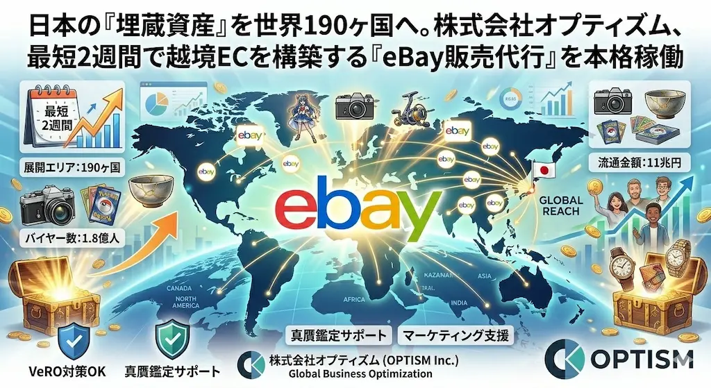 株式会社オプティズム(本社:東京都文京区、代表取締役:大木 勇)は、世界最大級のマーケットプレイス「eBay(イーベイ)」を活用し、日本企業の海外販売を一気通貫でサポートする『eBay販売支援サービス』を本格的に開始いたしました。