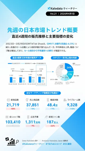 本レポートは、TikTok Shop関連データをもとに、Kalodata(カロデータ)が独自に収集・分析した情報に基づいています。