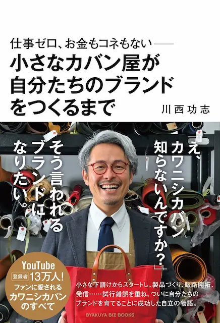 香川県高松市を拠点に、高品質なバッグや財布を展開する「カワニシカバン」(運営:株式会社カワニシカバンプロダクト)は、代表取締役・川西功志による初の著書『仕事ゼロ、お金もコネもない――小さなカバン屋が自分たちのブランドをつくるまで』を、2026年4月8日に白夜書房より出版いたします。