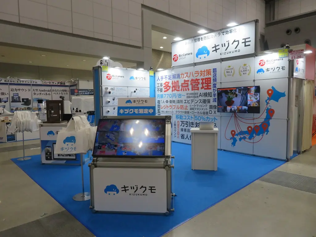本展示会では、AI分析機能を搭載したネットワークカメラを活用した「多店舗・多拠点の一括管理」および「カスタマーハラスメント(カスハラ)対策」をメインテーマに展示を行いました。